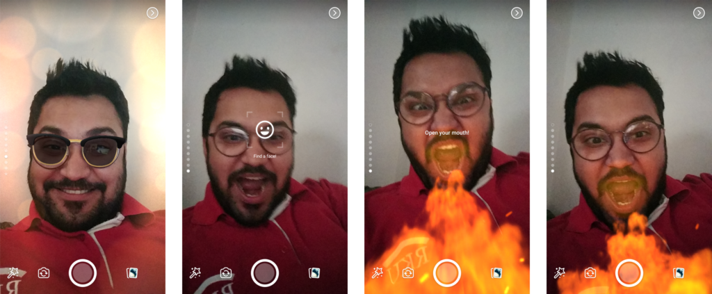 Social Media platforms are playing their part in giving users additional features in their apps or site, so that they can create more attractive & personalized content. Facebook recently has added a “Camera Effects” feature on their Mobile App, which will enable the user to click photographs with “Augmented Reality Effects”. Currently this Facebook feature has limited options, but this platform is open for Developers to contribute more filters and layouts. Hence we can expect more options / filters in the near future, with the army of outside developers on Facebook gear up.